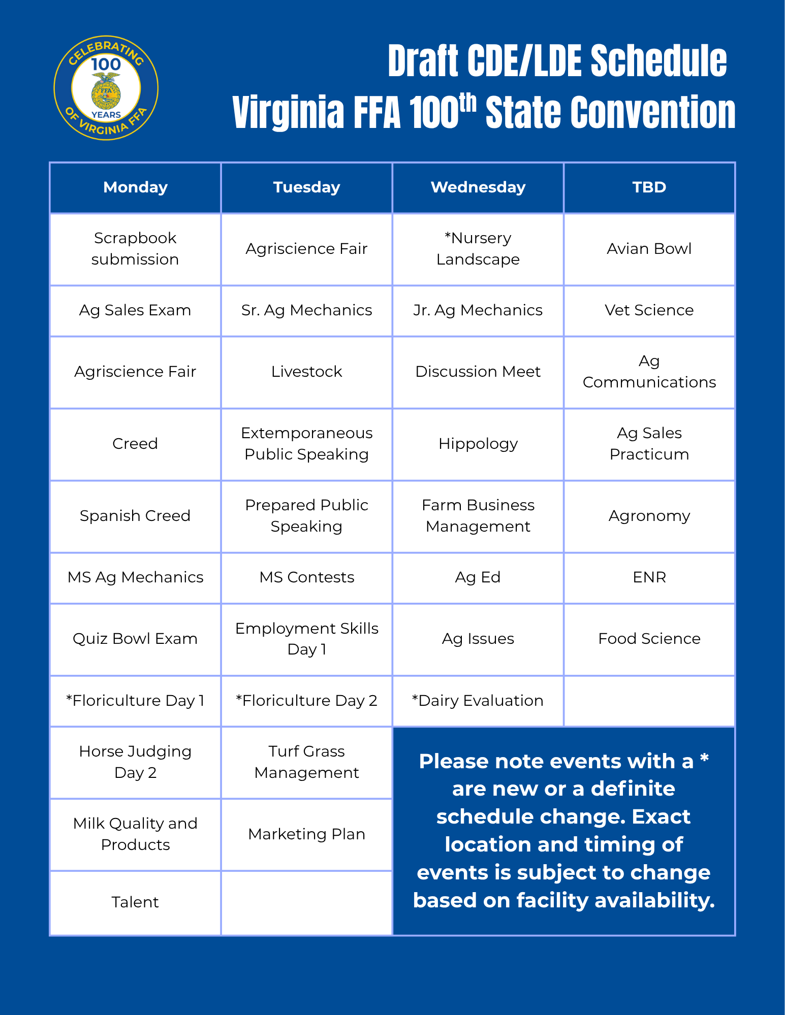 Whether you are a current member, advisor, alumni, or supporter, this is your convention. Join us as we celebrate a century of impact and continue cultivating a legacy that will carry Virginia FFA into the future.